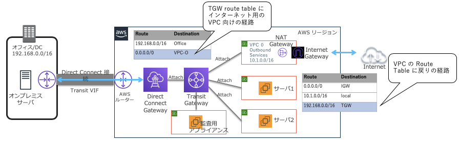 - 2.1:オンプレミスネットワークと AWS クラウド間のルーティング